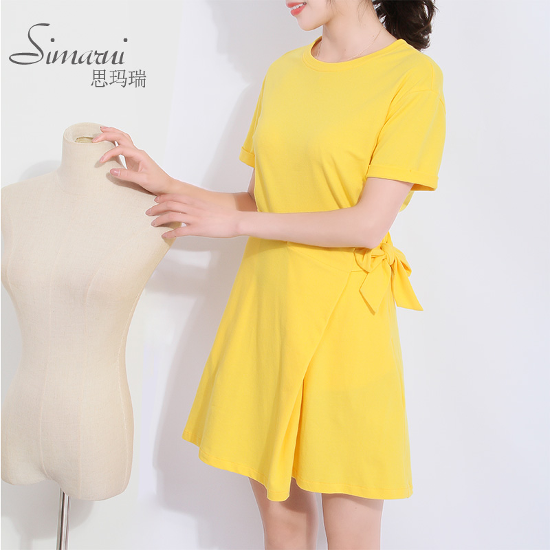 ไม่สม่ำเสมอมีมาดรัดเอวฝ้าย100% กระโปรงเสื้อยืดบุตรธิดา 2020 ใหม่สำหรับฤดูร้อนสีดำชุดกระโปรงสลิมแลดูผอมคำ