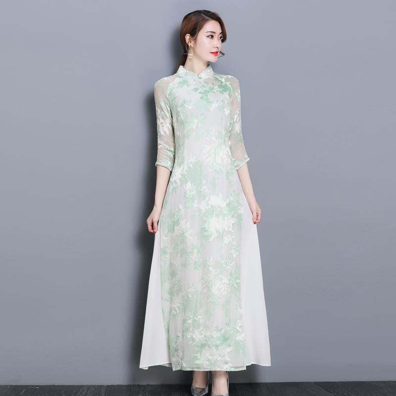 2020 ฤดูใบไม้ผลิใหม่เสื้อผ้าหญิงสไตล์จีนแนวย้อนยุคแนวจีนสลิมได้รับการดีไซน์ใหม่กี่เพ้าชุดกระโปรงงานฉลองความนุ่มนวลกระโปรงยาว