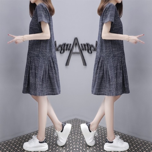 4.9 101วีดิโอแนะนำสินค้า สไตล์ยุโรป 2020 ฤดูร้อนใหม่เสื้อผ้าหญิงรุ่นยาวปานกลางขนาดใหญ่คำกระโปรงตุ๊กตาหลวมแลดูผอมตารางชุดกระโปรง