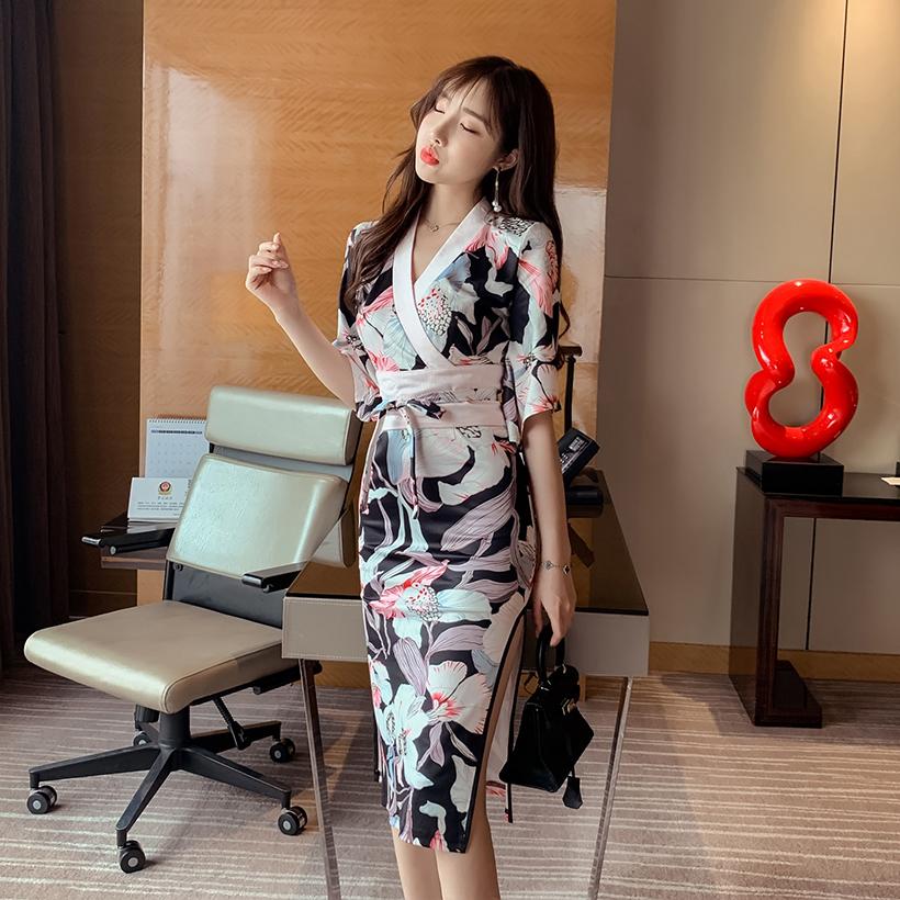 ข้อมูลเบื้องต้น คอลเลคชั่นฤดูใบไม่ผลิใหม่สไตล์ฝรั่งเศส 2020 สาวแนวย้อนยุครัดเอวแลดูผอมมีมาดรุ่นปรับปรุงใหม่ชุดกิโมโนสไตล์ญี่ปุ่นชุดเดรสน้ำ