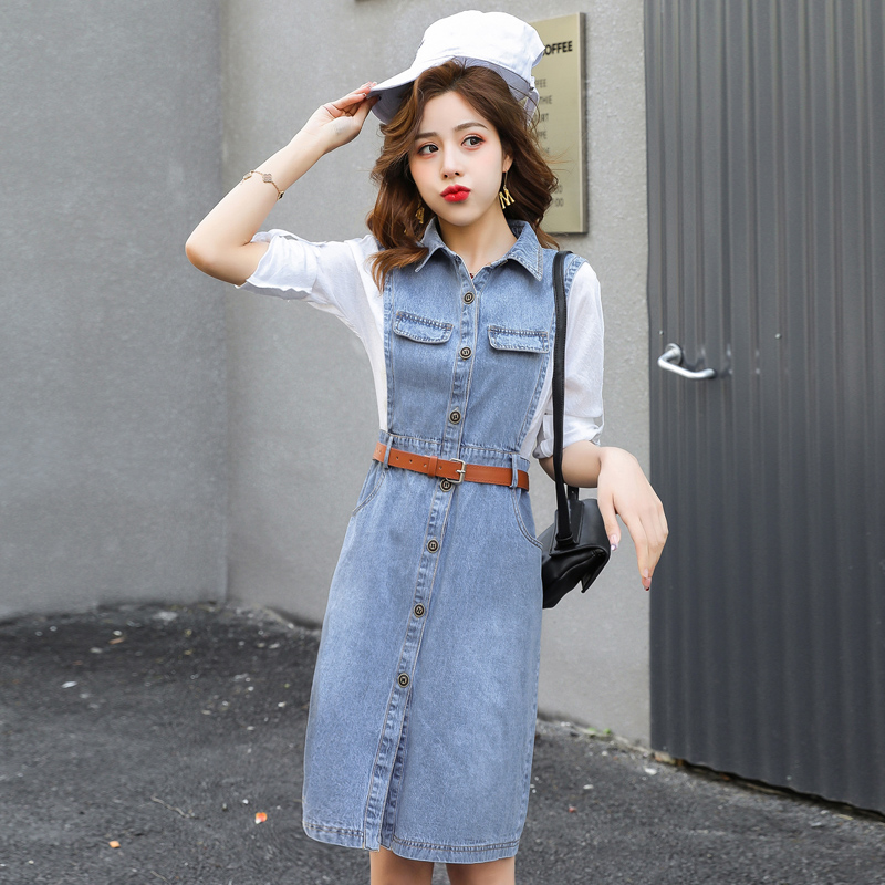 ชุดเดรสผ้าเดนิมเสื้อผ้าหญิงฤดูร้อน 2020 ที่นิยมใหม่สไตล์ฝรั่งอำพรางพุงกระโปรงสาวสวยพัดลมเสื้อผ้าฤดูใบไม้ผลิและฤดูใบไม้ร่วง